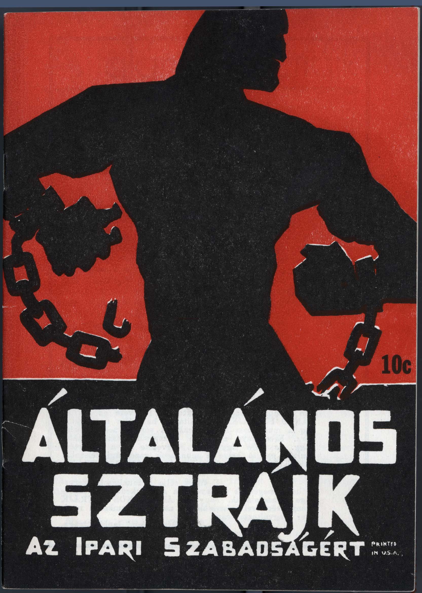 The IWW published many pamphlets in Hungarian and other languages. This is the Hungarian-language edition of the classic IWW pamphlet, The General Strike.